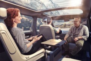 El I.D. Buzz ofrece una cabina flexible de ocho plazas, con un diseño de estilo lounge, sillas traseras ajustables y un asiento del conductor que gira 180 grados.
