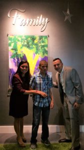 El logo que identifica a Family Life Care Services es una hermosa pintura del adolescente Bryan Fernández Cornejo. Derick explica por qué decidió que identificara a su empresa: “Bryan es nuestro paciente y él había iniciado un proceso creativo de pintar en las noches. Un día, su mamá Roxana Corcuera nos envió la foto de esa primera pintura. Cuando la vimos quedamos enamorados de ella y quisimos que fuerala imagen que nos identificara porque es especialmente significativa: está hecha a mano por alguien que es especial para nosotros, es uno de nuestros miembros, y el árbol significa familia”.