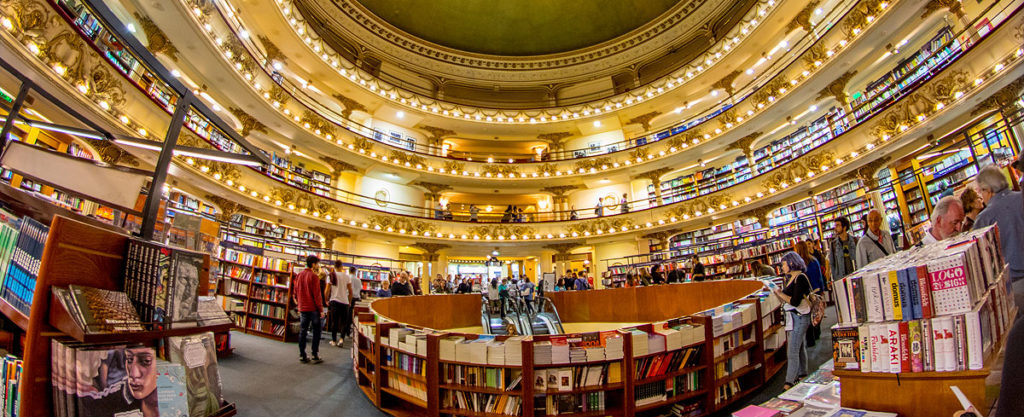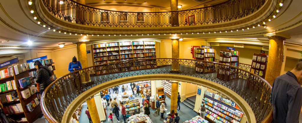 El Ateneo Grand Splendid fue elegida por el diario británico The Guardian como la segunda librería más importante del mundo. Por ella pasan por día cientos de curiosos y ávidos lectores que no dejan de maravillarse con el espectáculo que los rodea. Erigida sobre el antiguo cine-teatro Grand Splendid en el Barrio de Recoleta en Buenos Aires, conserva su antiguo esplendor y elegancia, con la cúpula decorada con frescos, las barandas originales y la decoración intacta.