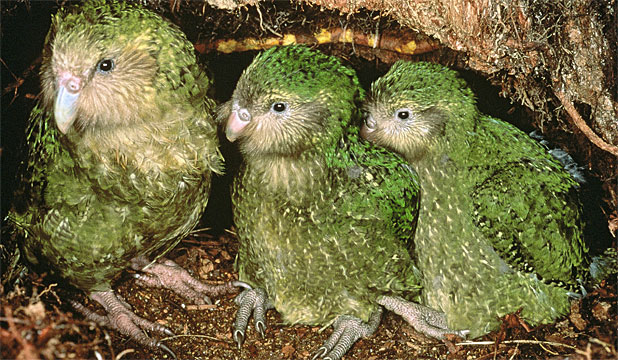 El kakapo o kákapu es una especie de ave psitaciforme de la familia de los loros de Nueva Zelanda, nocturna y endémica de Nueva Zelanda. Los maoríes apreciaban su carne por lo cual fue cazada y sus plumas eran utilizadas como adorno. Sin embargo, la colonización europea con la introducción de gatos, ratas, hurones y armiños logró casi su aniquilación.