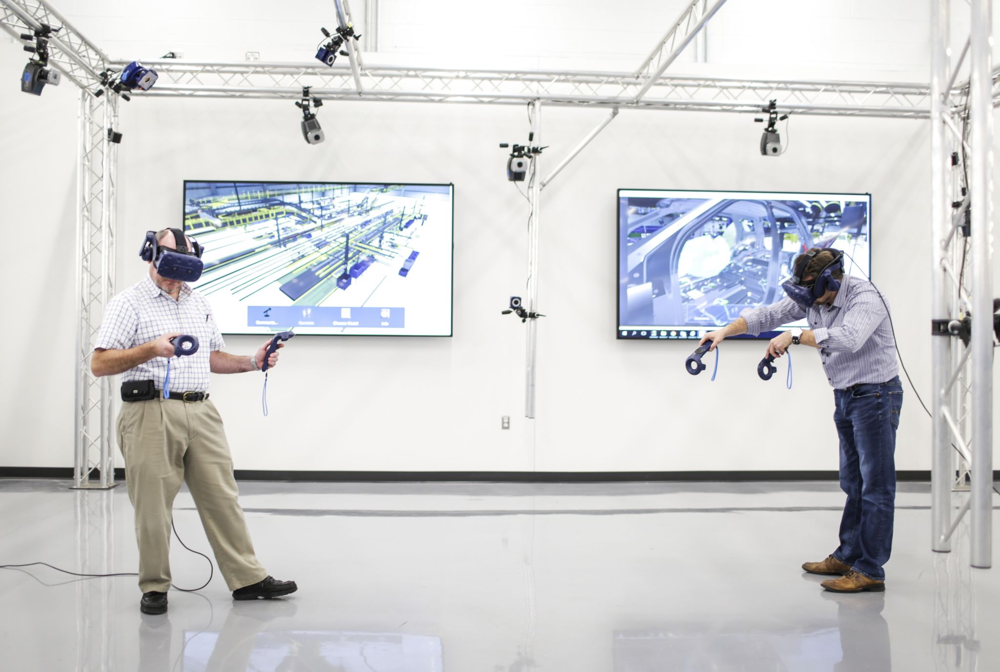 Los expertos de Ford ponen equipos de juego especializados y configuran una línea de producción de realidad virtual sin tener que abandonar el Advanced Manufacturing Center, lo que les permite identificar maniobras potencialmente peligrosas y ajustar los flujos de trabajo mucho antes de que se construya una línea de ensamblaje.