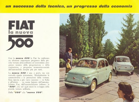 El Fiat 500, cariñosamente llamado en Italia «Cinquino», «Topolino» en Colombia, «Fito» en Chile, «Fitito» en Argentina, es sin duda uno de los automóviles italianos más famosos en el mundo.