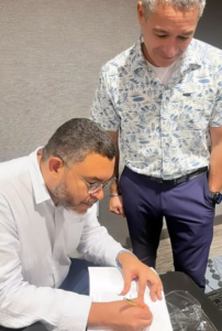En ese instante, bajo la cálida mirada de los presentes, ese joven se convertiría en protagonista de un momento mágico e inolvidable. Cuando un lector, prendado por la magia de las palabras, se acercó a él y le pidió que firmara el libro, el corazón del escritor se llenó de una mezcla de orgullo y humildad, de poder y
