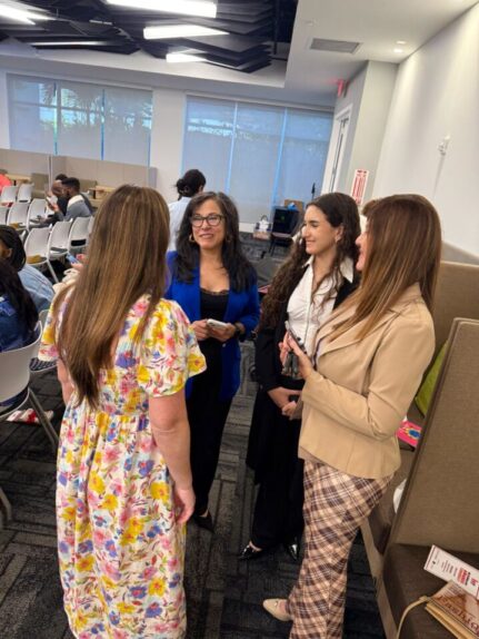Durante el evento, Marybel Torres, CEO de La Nota Latina y de M10, Drelly Ríos, vicepresidenta de M10, y Gabriela Santos, mentora del programa El Cuento de los Cien Niños, hicieron entrega al presidente Curtis y a la directora Lewis de una antología del programa, una iniciativa que también promueve la escritura, el pensamiento creativo y el desarrollo educativo entre los jóvenes.