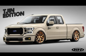 Según sus creadores, este modelo Tjin Edition del Ford F-150, es un seguimiento del que cautivó a la multitud en SEMA 2012. Un robusto motor V-8 de 5.0 litros que está acoplado a una transmisión automática de 10 velocidades. El F-150 de color beige cerrado trae una suspensión Air Lift y tiene ruedas doradas Rotiform de 24 pulgadas y neumáticos Falken. Los frenos Big Baer ayudan a frenar este monstruo. En el interior posee Katzkin negro y naranja con un sistema de sonido Kicker.