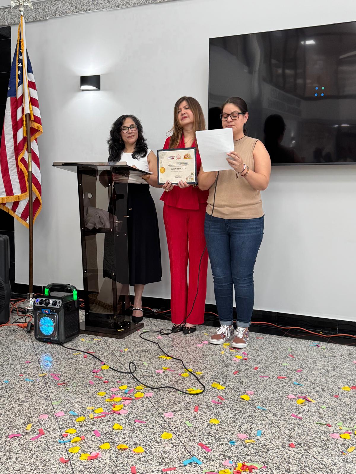 Alba Elena Pérez Londoño (Colombia, Carolina del Norte), recibió el reconocimiento su padre Rogelio Pérez, de manos de Albert Collazo (Ford), con lectura a cargo de Susana Illera-Martinez.