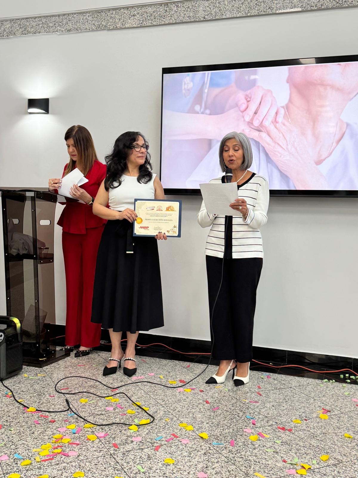 La ganadora es María Laura Niño Rosales (México, Florida), no pudo asistir, pero sus palabras fueron leídas por Ivonne Fernández, directora de AARP y creadora de la categoría.