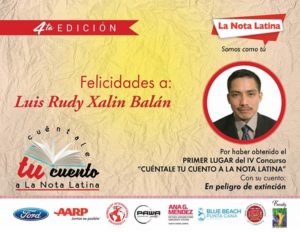 –En Guatemala ya había ganado dos premios literarios y el interés de dar a conocer mi narrativa me llevó a buscar concursos de cuentos en internet y casualmente encontré la convocatoria para la primera edición y no dudé en participar y como ya saben, obtuve el tercer lugar esa vez. El concurso es uno de los más importantes en Miami por la temática y la buena organización. Espero que siga en ascenso.