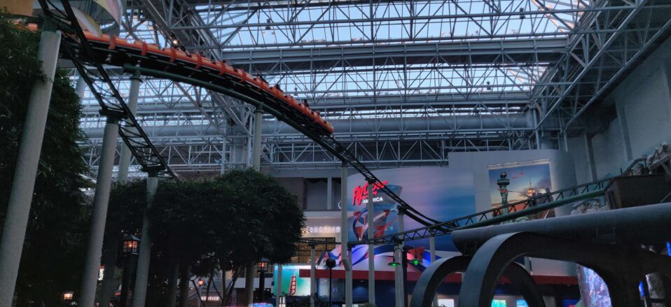 Hay varias montañas rusas, todas repletas de figuras y dibujos de los personajes de los programas del canal infantil por cable Nickelodeon, como SpongeBob Squarepants, Rugrats, Dora la Exploradora y las Tortugas Ninja. De hecho, la aventura aérea de la atracción de las tortugas, llamada Shell Shock, es impresionante, sobre todo porque está bajo techo. Si quieres tomar buenas fotos de esta atracción, suba al último piso del centro comercial.