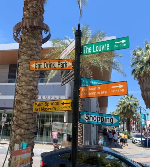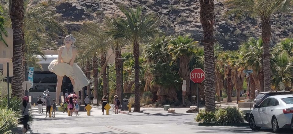 Un recorrido a pie por el downtown es la mejor manera de comenzar una visita a Palm Springs. Ahí encontrará una enorme estatua de Marilyn Monroe frente al famoso Museo de Arte. A pocos pasos verá toda clase de esculturas, además de murales que en ocasiones adornan las fachadas de las muchas galerías de arte, tiendas y restaurantes.