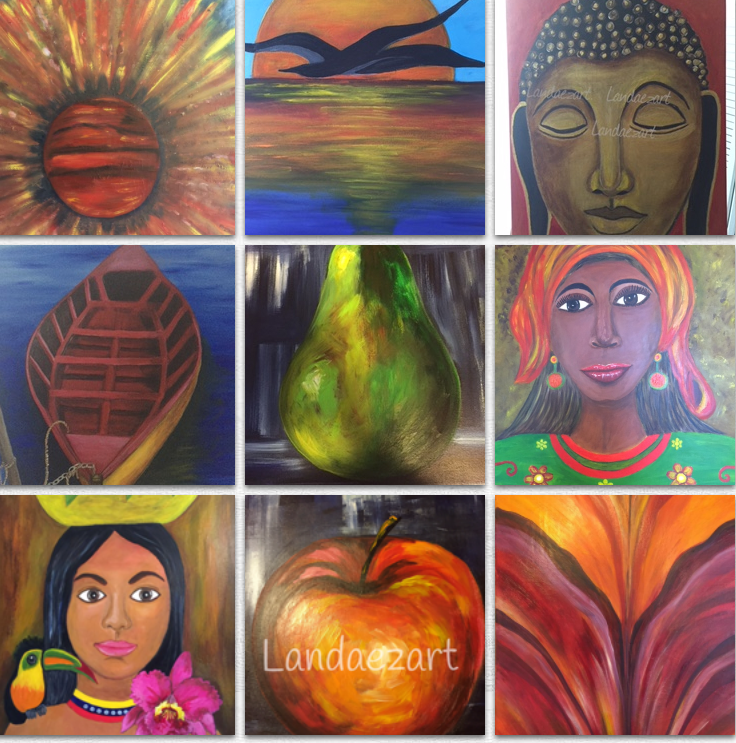 Para encontrar mayor información sobre esta artista y su maravillosa obra llena de color, rostros figurativos, objetos y paisajes pueden visitar su página: www.landaezartcom/about-me.html