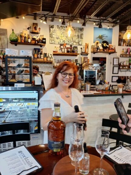 Sumérgete en la esencia del arte mientras disfrutas de la exposición artística, y al mismo tiempo, deleita tu paladar con una variada selección de rones exquisitos y además te cuentan el origen y el proceso de producción. Además, puedes saborear un café local de primera calidad y disfrutar de unas deliciosas empanadas y repostería. Todo esto en un ambiente que te invita a la relajación, ya sea leyendo un libro o simplemente absorbiendo la inspiración que emana de este espacio cultural.