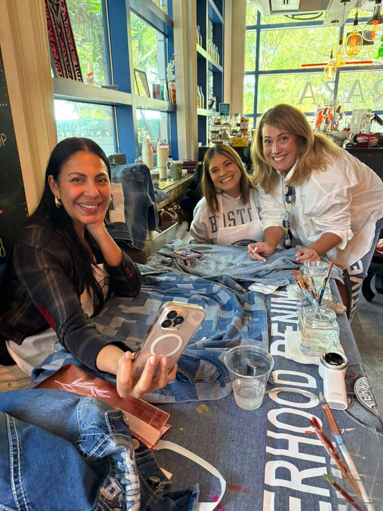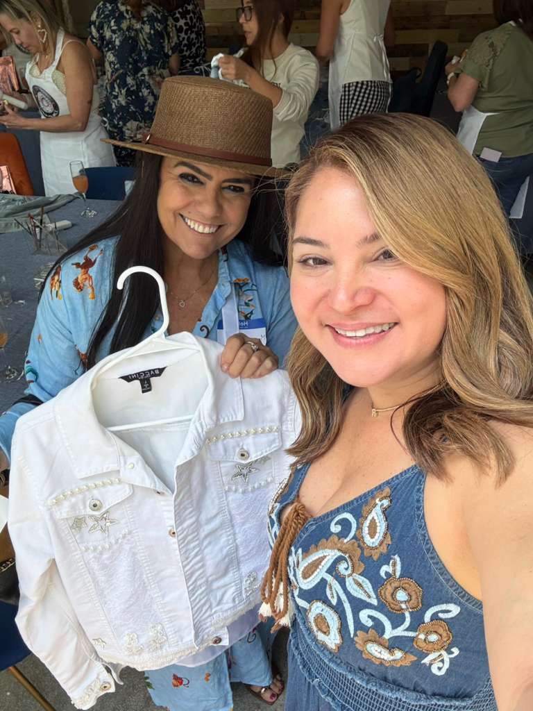Durante la jornada, cada participante tuvo la oportunidad de intervenir y personalizar su propia chaqueta de denim, plasmando en ella su proceso personal con el acompañamiento del equipo creativo de Sisterhood Denim.