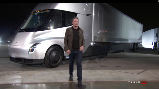 Musk afirma que la plataforma eléctrica del camión puede viajar 500 millas completamente cargada con una sola carga y que puede acelerar a 60 mph en 20 segundos tirando de su carga máxima de 80,000 libras.