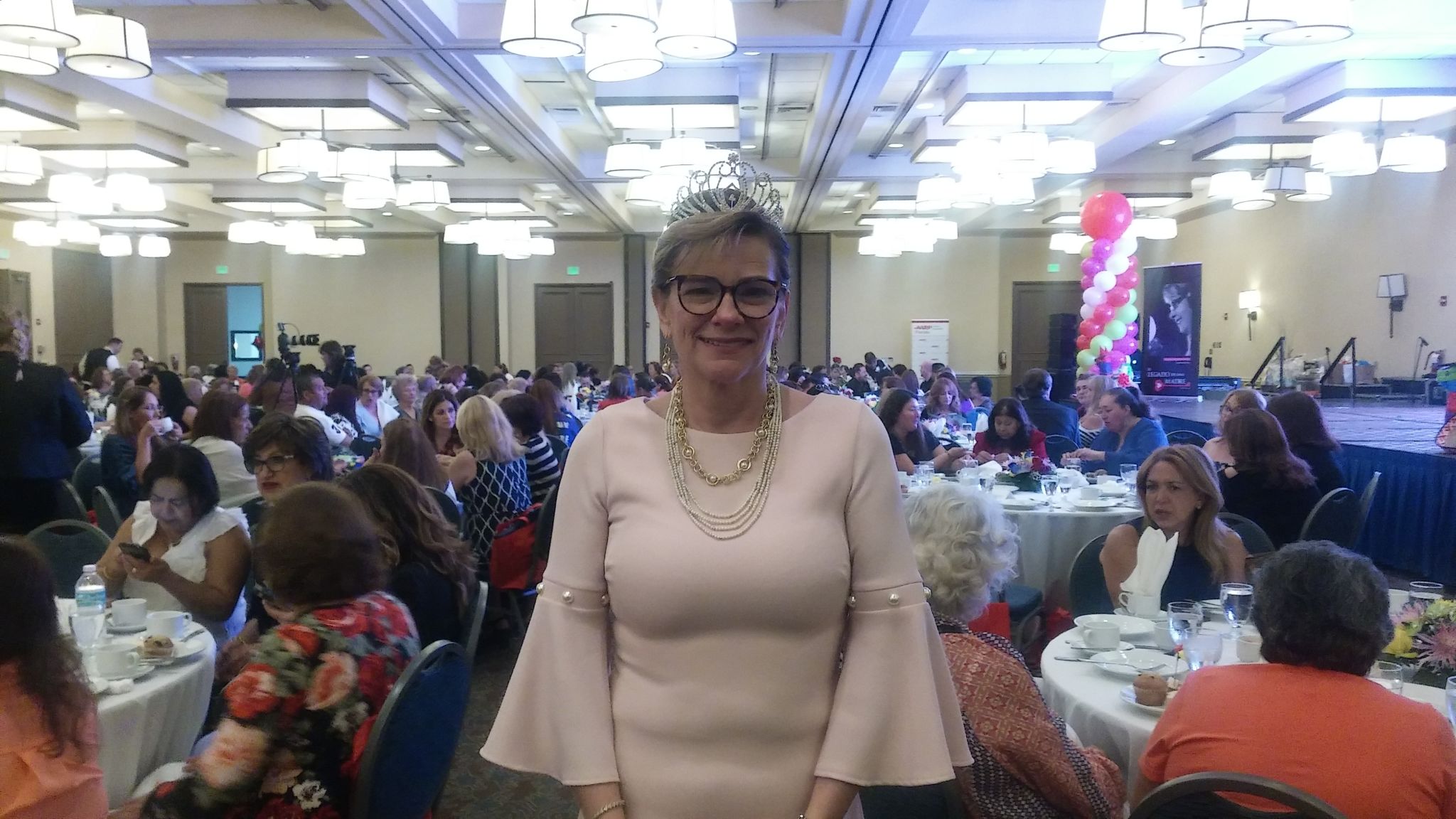 Ivonne Fernández, directora regional de AARP, principal patrocinador de este maravilloso evento, un líder involucrada con la comunidad, de nuevo dejó un mensaje de positivismo, esta vez ante más de 500 mujeres que atentas la escuchaban en el salón Royal Poinciana del hotel Doubletree. Fernández sacó un par de lentes y cuando se ponía uno y se cambia por otro, explicaba que la vida había que verla desde un punto de vista positivo sin importar el lentes que selecciones, porque «si algo se llevan de enseñanza hoy es la certeza de que cada una de ustedes fue seleccionada para estar aquí, que le pertenecemos a un Dios, que es él quien no da los lentes para mirar las circunstancias que nos tocan, pero que esos lentos que él no da están en nuestros corazones”.