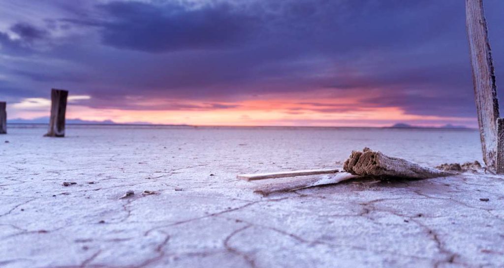 Donde hace millones de años había un enorme lago, ahora se encuentra un desierto salado de 260 km2, una vasta llanura blanca deslumbrante ubicada cerca del poblado de Wendover. Se asemeja a un lago helado cubierto de nieve, un paisaje sorprendente conocido por las carreras de automóviles que tienen lugar en las salinas desde 1914, en el famoso Bonneville Speedway.